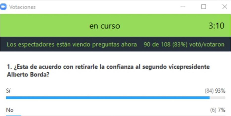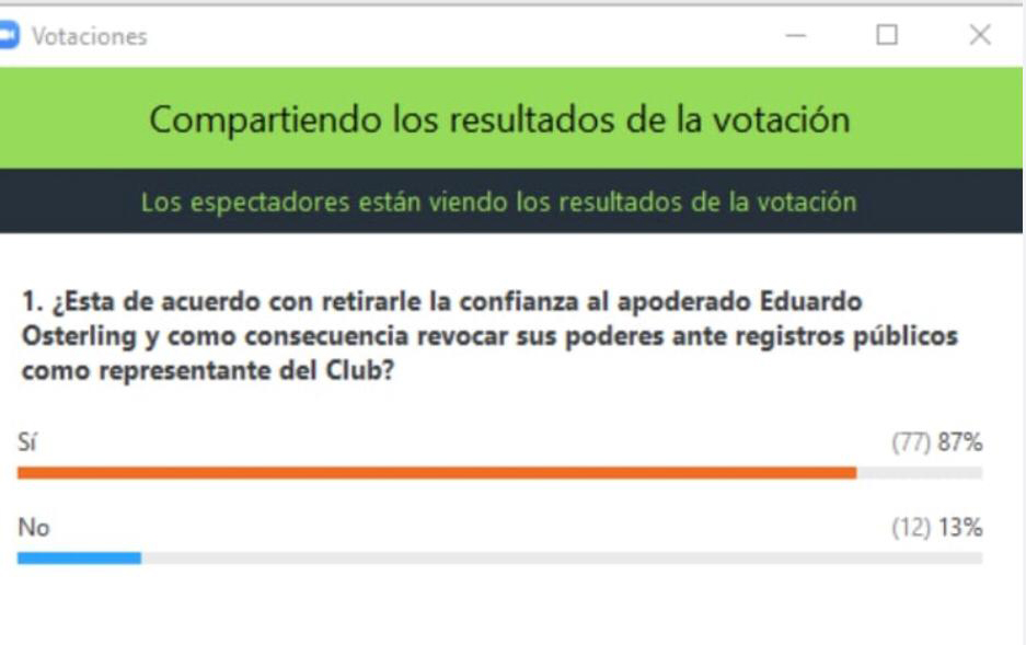 Estos cargos si bien es cierto provienen de un acto electoral, la asamblea ha manifestado que no confía en los actos que Borda realice; por lo tanto, es una decisión en la cual se le está diciendo que tome conciencia de que el 93 por ciento lo desea fuera del club porque ese 93% de socios le retiró la confianza.